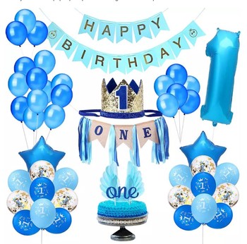 صبي أزرق واحد معلق عيد ميلاد لافتات عالية الكرسي فرانج لاند تاج واحد كعكة القبعات العلوية حزب الدعائم عدة لوازم