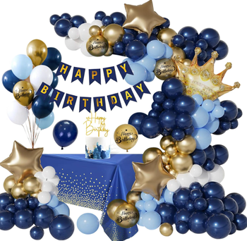 Boy Birthday Party Metallic Navy Blue Printed Latex Balloons Garland Arch Happy Birthday Banner Cake Topper Tablecloth Supplies