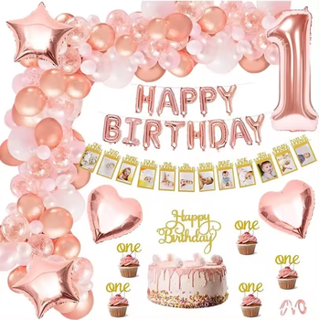 Boy Girl 1st Birthday Party Pink/Blue Balloon Garland 1-12 Month Baby Photo Booth Props Big 1 Foil Balloon Cupcake Toppers Decor