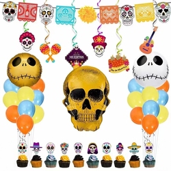 Day Of The Dead Party Treo Cờ biểu ngữ lá Swirls Dia de los Muertos sọ Helium lá bóng bay đồ chơi Cupcake toppers trang trí